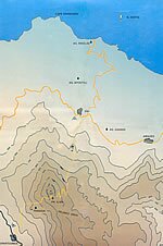 Mount PELINEO, the highest peak of the island at 1297m., offers breathtaking views. The following two routes will provide the hiker some exquisite experiences.