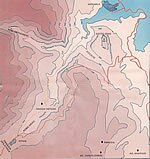 The first route begins just before the village VIKI on the KARDAMYLA side. By following an old footpath and mountain road we can reach a mountain shelter near a fresh water spiring with drinkable water. This part of the journey will take about 1 hour. Further along the route a dark coloured perpendicular rock dominates the area. Leaving this rock to the right climb up along a small stream to a plateau above it. Follow a big zig - zag course while continuously moving uphill to reach the top and a small church known as AGIA TRIADA. The high difference from the previous point is 900m. The trip takes about 2:30' hours.